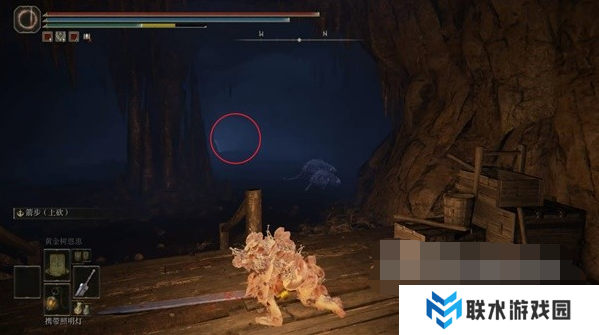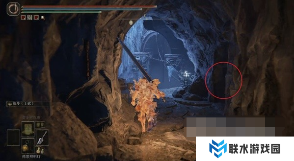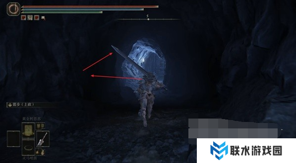2、等进入洞穴后可以发现正前方的门此时无法打开,玩家往左侧的通道走。