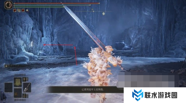 3、在左侧的通道进入右墙第二个房间,打开里面的宝箱获得【监牢上层钥匙】,使用钥匙打开洞穴入口正前方的门。