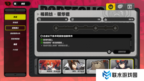 2、条件是:需拥有代理人“格莉丝”,并且在剧情中首次遇到过“格莉丝”,完成格莉丝的代理人秘闻「钢铁的女巫」;