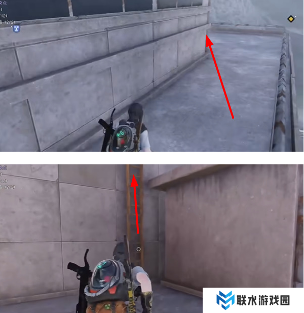 4、通过梯子去到楼顶的位置,之后右转就可以找到新的梯子,从梯子上去可以去到阳台上;