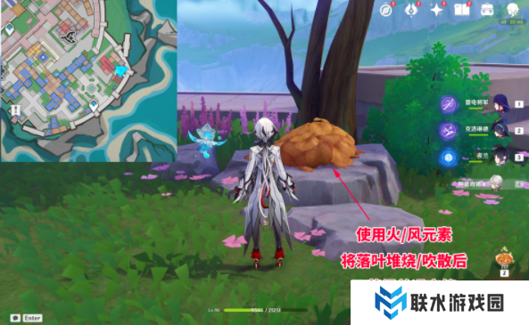 找到树下的落叶堆,用火/风元素将落叶堆烧/吹散后,即可获得。