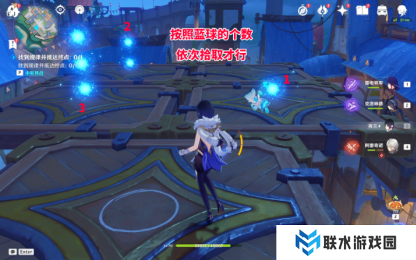 3、之后会出现跑酷环节,不限时可以慢慢来,会遇到如下“谜题”,很简单,按照蓝球的个数依次拾取即可。
