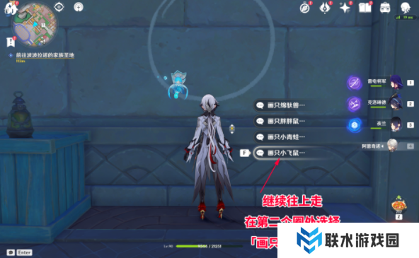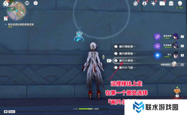 4、继续沿着楼梯往上走,在第二个圈处选择「画只小飞鼠...」,完成即可获得。