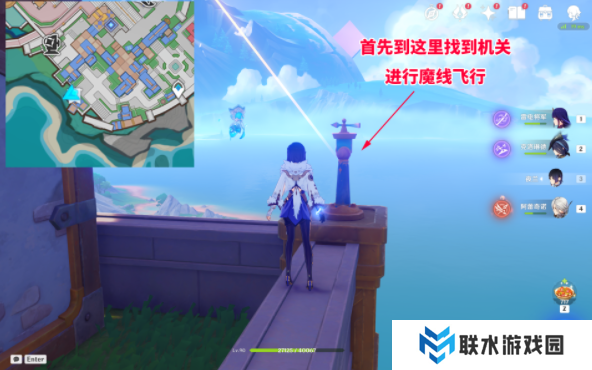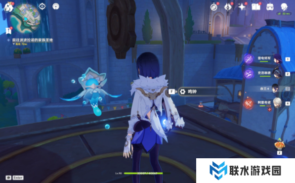 2、然后使用机关上升到高处,在“钟”的位置选择「鸣钟」