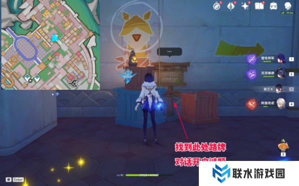 1、首先找到楼梯旁的路牌,与其对话开启谜题