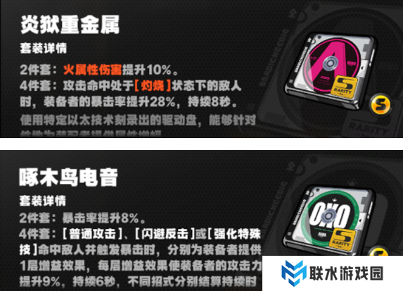 炎狱重金属在攻击灼烧状态敌人时会有暴击加成,通常暴击不足时是优解。当你暴击充足时可以选啄木鸟电音四件套。注意去触发啄木鸟电音的套装效果。