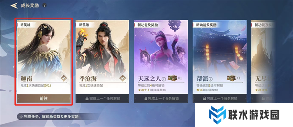 5、在游戏结束后,可通过大厅选择【初入永劫】-【成长奖励】查看是否成功解锁迦南这位新英雄。