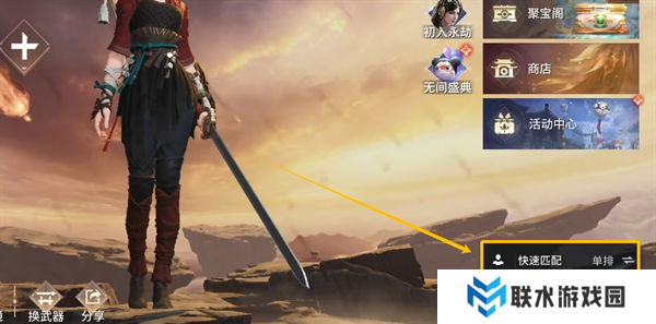 1、打开永劫无间手游,在游戏大厅界面点击右下角开始游戏上的【游戏模式】切换当前模式;