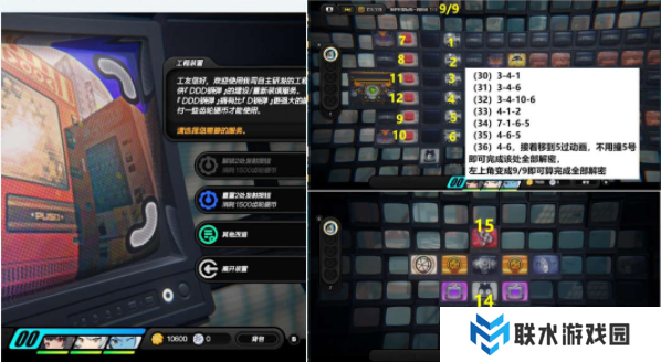 8、进入13商店后,连续购买2次【重置2处发射按钮】后退出商店即可,接着继续完成30-36步操作,左上角进度就会到9/9,这时就会触发剧情直接传送到14区域,如果你完成第36步操作后,左上角进度还没到9/9,没到就再上下移动几次让进度到9/9,如果还不能到9/9,那就是你之前操作顺序错了,可以自行先继续操作一下试试,实在不行就退出重新开始,传送到14区域,拿了全部奖励后,最后去15区域打完boss后,该该【探索委托】即可结束,另外如果最后14区域左右差紫色箱子的话,就说明之前操作有误,不是无伤通关的,那就需要重新开始打一次了。