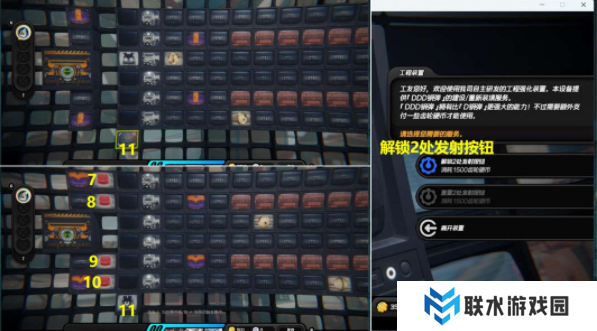 4、完成上面6步操作后,会解锁13区域商店,然后去商店连续购买2次,每次都选择【解锁2处发射按钮】,这样就会出现7-10红色按钮,红色按钮可以加强对应坦克的炮弹威力。