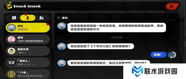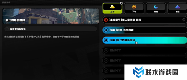 1、在【联系人】中来找到npc安比,在这里选择邀约任务【安比的电影时间】;
