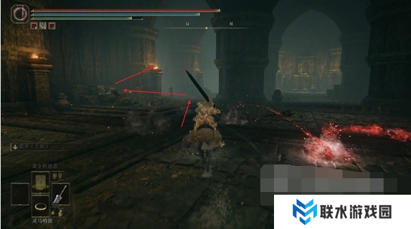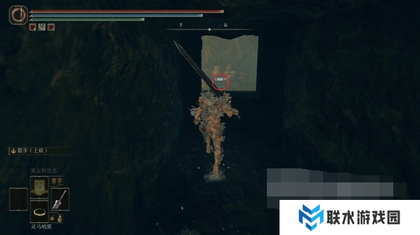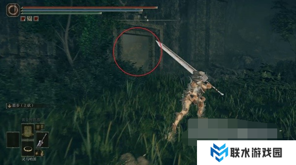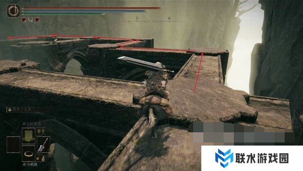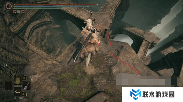 1、这个护符是从赐福【劳弗古遗迹(西方)】附近的宝箱中获得,我们从这个赐福点出发,进入前方的遗迹建筑内。