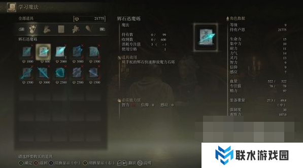 艾尔登法环游戏中有很多魔法,其中“辉石迅魔砾”是很多玩家喜欢的魔法,这个魔法消耗的法力比较少,而且射速快,那么具体怎么获得,可以参考小编接下来给大家带来的详细介绍。
