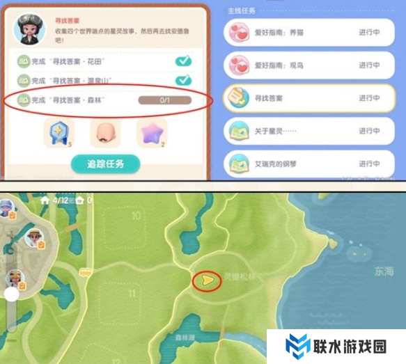 1、玩家要先接到主线任务【寻找答案】,完成“寻找答案·森林“,跟着任务指引来到地图这个位置: