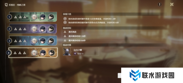 鸣潮游戏中逆境深塔实验区是第一个可以进入的实验区,其中“残响之塔“的挑战等级是70级,玩家打之前可以搭配一个合适的队伍,可以参考小编接下来给大家带来的详细介绍。