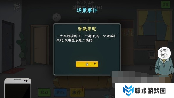 期间不要打开游戏,一直重复15天就会接到二姨的电话触发这个结局。