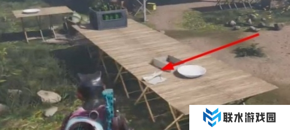 4、等玩家到达下图所示的木桌子附近后,靠近桌子点击交互键即可获得熏肉罗宋汤食谱。