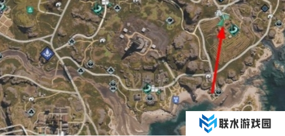 1、玩家打开地图之后,选择传送到【代顿湿地】的【苏德兰果园】,如下图: