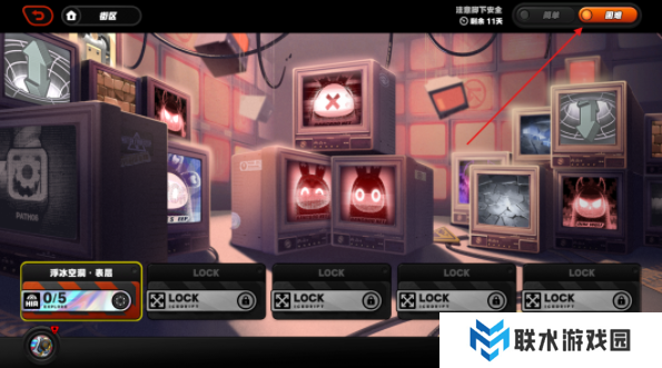 1、玩家点击接【街区】右下角的红色按钮,然后如图切换难度,【浮冰空洞·表层】。
