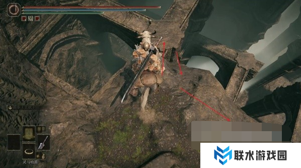 6、在上层沿着地图右侧断掉的桥一直走然后跳到右边的遗迹上。