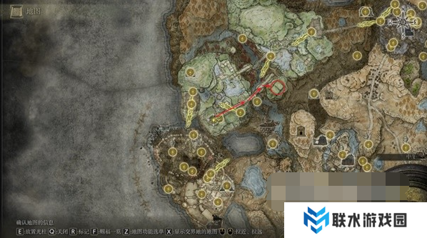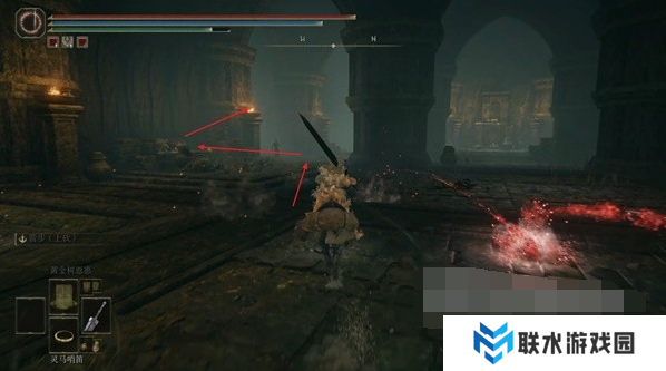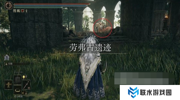 1、从赐福【劳弗古遗迹(西方)】,这个赐福点出发,进入前方的遗迹建筑内。