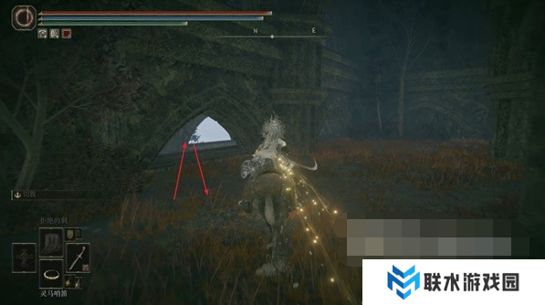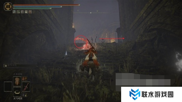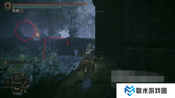 9、在下层的森林继续往左下跳,在底层往右侧的圆形建筑遗迹走。