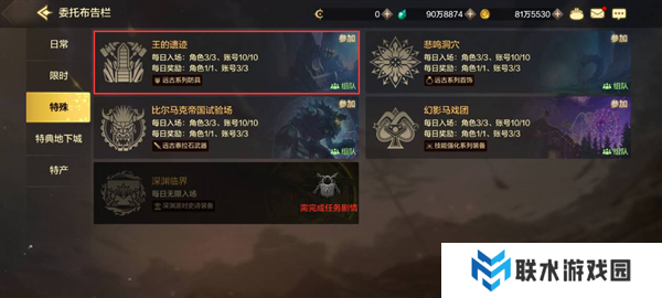 王的遗迹是DNF手游当中四大远古副本之一,副本的进入等级为30级,打开主页面右侧的【委托】,选择【王的遗迹】即可进入。