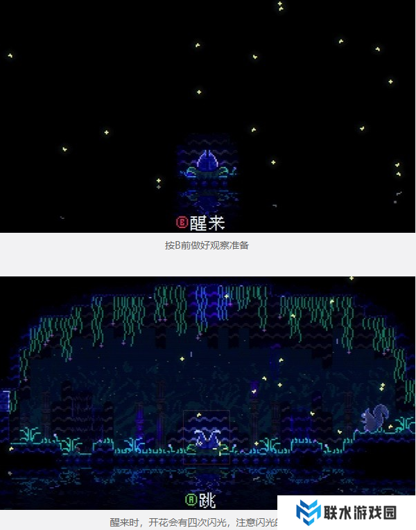 3、接下来,以每个存档栏位分别开始新游戏,跳过开场动画,在按B键醒来时,花会开,同时发出四次闪光,观察光点产生的顺序和方向。