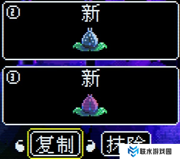 2、其中可以看到,4朵花的花尖处,分别是空的、两横、空的、两竖。这个图案似乎有点熟悉?让我们回到加载存档界面,通过复制我们现有存档再删除原位置,可以分别看到三个栏位为空时的花形状,花尖处分别是两横、两竖和空的,正对应这里的三种图案。