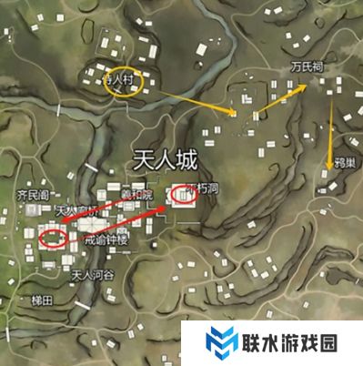 天人城从左往右,或者从右往左搜都可以,搜的时候多看看阁楼,经常会有隐藏的金堆或者绿堆。