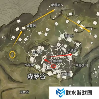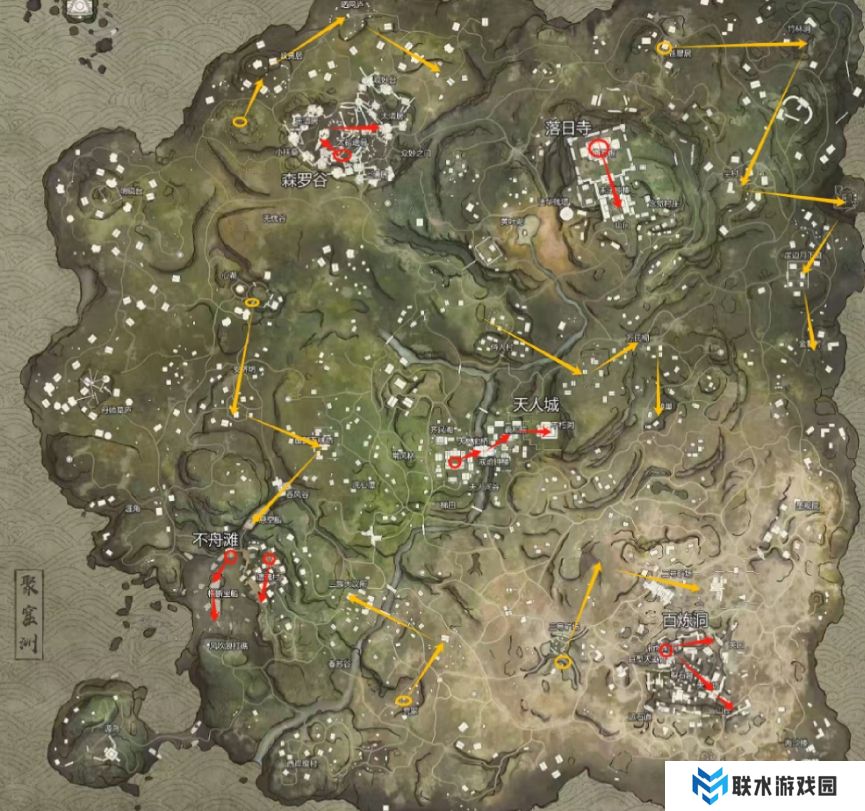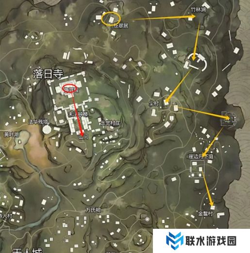 落日寺比较简单,从悔罪殿一路刷下来就可以了,打野路线的话未必要跑完全程,一般搜两三个点就够了,只不过都挺肥的,就全列出来了。