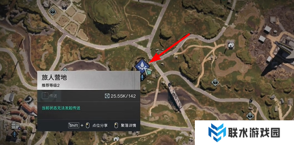 1、【小纸人】要完成任务来获取,玩家前往代顿湿地的这个地方旅人营地,如下图: