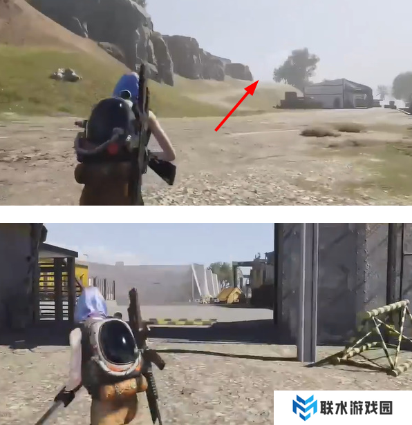 2、然后往前走会有一个基地,玩家要进入基地探索,神秘宝箱在我们右手边这个营地里面;