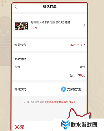 3、之后点击“立即购买”,勾选协议,确认订单,支付38元即可;