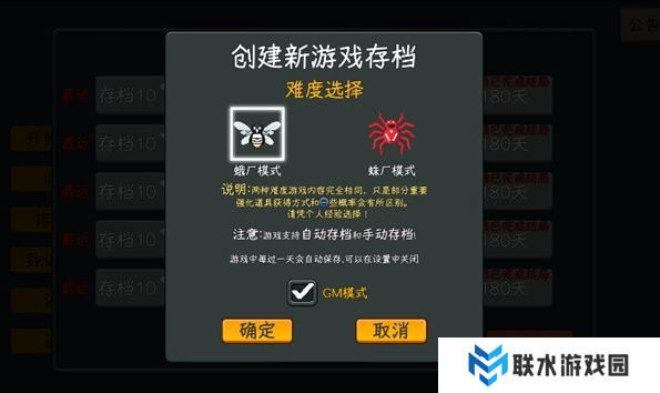 1、进入游戏之后,玩家点击【创建新游戏存档】,然后勾选下面的【GM模式】;