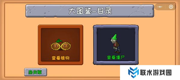 4、点击左下角“图鉴”玩家可以查看植物图鉴、僵尸图鉴,了解不同植物和僵尸的效果、威力等特性;