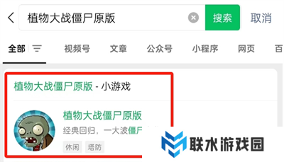 1、打开手机微信搜索“植物大战僵尸原版”,选择小游戏进入游戏;