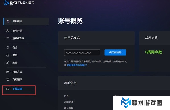 2、之后在账号概览页面找到下载战网的选项,如下图: