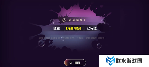 4、最后即可达成【光杆司令】结局:爱情的基本条件是唯一性和排他性,只有专一才能拥有好的爱情。