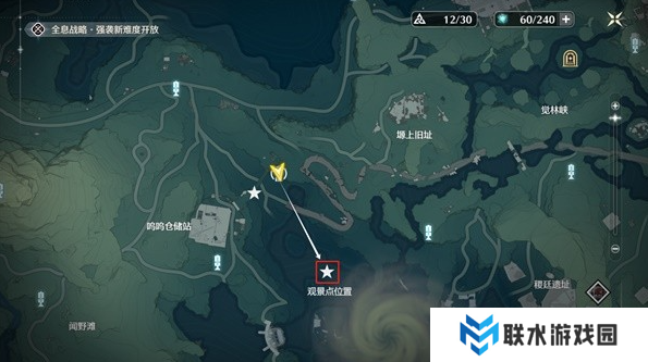 观景点位于呜鸣仓储站地图右下方,我们从如图角色所在位置的传送点过去就好。