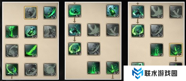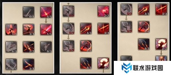 这里2技能选的是“迅击”,CD快可以充能2层,个人感觉手感更好点。“鬼刃斩”CD长,但提供更多弱点,可以考虑配合最后一行的天赋“弱点特效”一起使用。