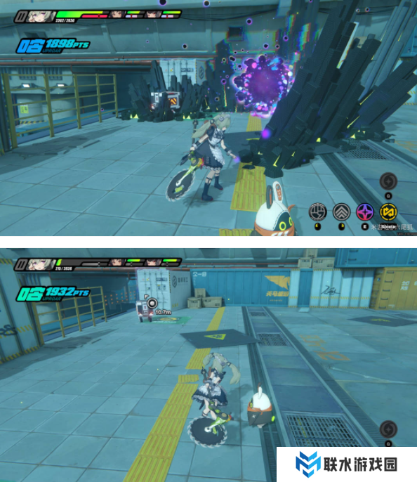 BUFF1:在第一个大怪指示点前不要随指引先过去,车厢上连续左拐有一个回满终结技的道具。