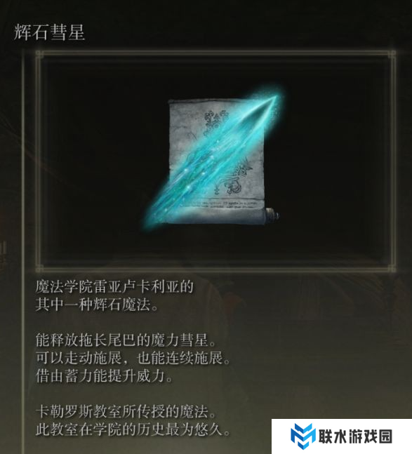 艾尔登法环游戏中有很多魔法,其中“辉石彗星”是法术伤害很高的魔法,在战斗中可以发挥很大的实力,因此有很多玩家喜欢,那么具体怎么获得,可以参考小编接下来给大家带来的详细介绍。