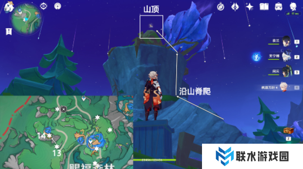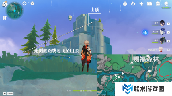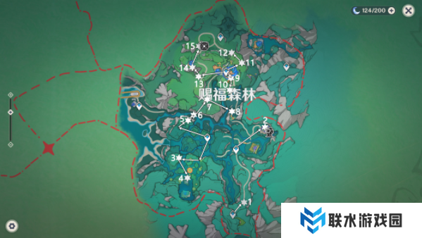 传送赐福森林西南方向锚点,之后往地图的西北方向走,前往山的侧面,最后往侧面路线可飞至山顶拾取。