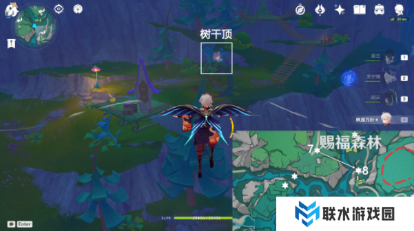 传送赐福森林北方向锚点,往地图的东北方向飞,在绿植顶拾取。