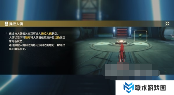 2、与机关互动,操控人偶踩住房间内的压力板,然后切换回角色穿过激光,完成教学。