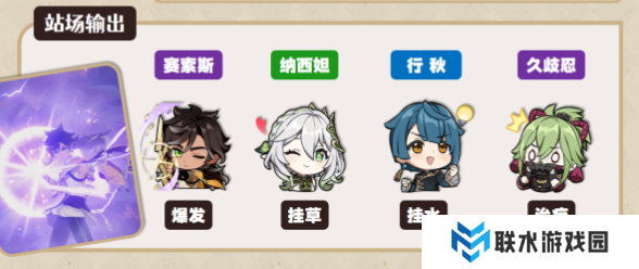 角色搭配:赛索斯、行秋、久岐忍、纳西妲