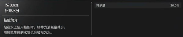 补充水分:站在水上发动技能时,魔力消耗量减少。