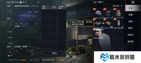 3、在游戏开始之前,玩家需要通过“战备”进行战前准备,需要将所需装备添加到背包中;