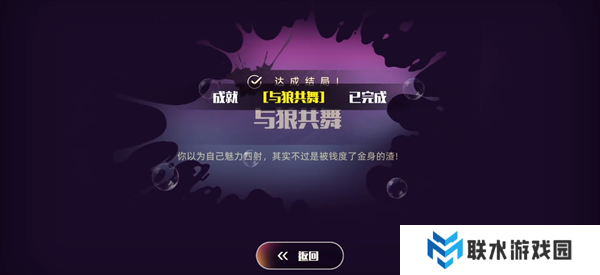 5、最后对话结束后,即可达成结局【与狼共舞】:你以为自己魅力四射,其实不过是被钱度了金身的渣!